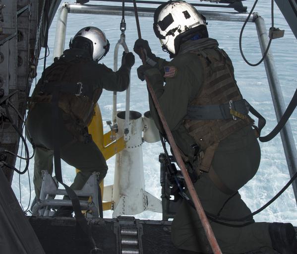 | Keywords: HM-15 MK 104 130806-N-PX130-037.jpg en Naval Air Crewman 3rd Class John Porcuna left and Naval Air Crewman 2nd Class Jeff Coonce both assigned to Helicopter Mine Countermeasures Squadron HM 15 lower a Mk 104 acoustic mine sweeping device out the back of an MH-53E Sea Dragon helicopter during over-water training HM-15 is assigned to Commander Task Force 52 promoting mine countermeasures in the U S 5th Fleet area of responsibility U S Navy photo by Mass Communications Specialist 1st Class Daniel Gay/Released 2013-08-06 Petty Officer 1st Class Daniel Gay https //www dvidshub net/image/1001340 130806-N-PX130-037 2013-08-23 03 25 U S 5TH FLEET AREA OF RESPONSIBILITY PD-USGov-Military-Navy MH-53E Sea Dragon Images from DoD uploaded by Fæ |