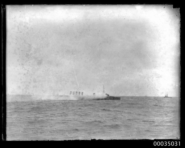 | Keywords: hood collection hoodcollection 35031 samuel j hood collection samueljhoodcollection hmas torrens hmastorrens torrens royal australian navy royalaustraliannavy navy naval vessel navalvessel sinking scuttled scuttling 1930 destroyer sydney sydney heads sydneyheads ship warship australian navy australiannavy ran hmas torrens (d67) hmastorrensd67 d67 river-class riverclass torpedo boat destroyer torpedoboatdestroyer target ship targetship blackandwhite photo border monochrome outdoor sky cloud black and white Having served in the Royal Australian Navy from 1916, latterly as a training platform for the Naval Reserve, HMAS TORRENS I was decommissioned and prepared as a target for Fleet Gunnery Practice. On 24 November 1930 Samuel J Hood, who was probably on board HMAS ANZAC, photographed the sinking of TORRENS off Sydney Heads. TORRENS can be seen with the tug HEROIC on the right in the background. The smoke billowing out of the vessel possibly indicates the moment after the final gelignite charges, laid by the crew of HMAS CANBERRA, were detonated. This photo is part of the Australian National Maritime Museum’s Samuel J. Hood Studio collection. Sam Hood (1872-1953) was a Sydney photographer with a passion for ships. His 60-year career spanned the romantic age of sail and two world wars. The photos in the collection were taken mainly in Sydney and Newcastle during the first half of the 20th century. The ANMM undertakes research and accepts public comments that enhance the information we hold about images in our collection. This record has been updated accordingly. Photographer: Samuel J. Hood Studio Collection Object no. 00035031 Having served in the Royal Australian Navy from 1916, latterly as a training platform for the Naval Reserve, HMAS TORRENS I was decommissioned and prepared as a target for Fleet Gunnery Practice. On 24 November 1930 Samuel J Hood, who was probably on board HMAS ANZAC, photographed the sinking of TORRENS off Sydney Heads. TORRENS can be seen with the tug HEROIC on the right in the background. The smoke billowing out of the vessel possibly indicates the moment after the final gelignite charges, laid by the crew of HMAS CANBERRA, were detonated. This photo is part of the Australian National Maritime Museum’s Samuel J. Hood Studio collection. Sam Hood (1872-1953) was a Sydney photographer with a passion for ships. His 60-year career spanned the romantic age of sail and two world wars. The photos in the collection were taken mainly in Sydney and Newcastle during the first half of the 20th century. The ANMM undertakes research and accepts public comments that enhance the information we hold about images in our collection. This record has been updated accordingly. Photographer: Samuel J. Hood Studio Collection Object no. 00035031 |