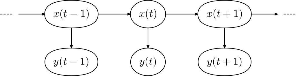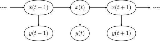 Keywords: Hmm temporal bayesian net.svg Hidden Markov model represented as a Bayesian net with time slices Own work by uploader layout copied from bitmap Image Hmm_temporal_bayesian_net png Qef 2007-07-10 Equivalent bitmap image Image Hmm_temporal_bayesian_net png Source code metapost <pre> prologues 3; input boxes beginfig 1 ; arrowlenx 16mm; arrowleny 10mm; dasheslen 6mm; dashesgap 3mm; textscale 1 5; pickup pencircle scaled 1pt; circleit xa btex x t-1 etex scaled textscale ; circleit xb btex x t etex scaled textscale ; circleit xc btex x t+1 etex scaled textscale ; circleit ya btex y t-1 etex scaled textscale ; circleit yb btex y t etex scaled textscale ; circleit yc btex y t+1 etex scaled textscale ; xa dx xb dx xc dx ya dx yb dx yc dx defaultdx 4; xa dy xb dy xc dy ya dy yb dy yc dy defaultdy 4; xpart xa w dasheslen + arrowlenx; ypart ya s ypart yb s ypart yc s 0; xb w xa e + arrowlenx 0 ; xc w xb e + arrowlenx 0 ; xa s ya n + 0 arrowleny ; xpart xb s xpart yb n; xpart xc s xpart yc n; drawboxed xa xb xc ya yb yc ; z1 xa w - arrowlenx 0 ; drawarrow xa e--xb w; drawarrow xb e--xc w; z2 xc e + arrowlenx 0 ; drawarrow xa s--ya n; drawarrow xb s--yb n; drawarrow xc s--yc n; linecap butt; drawarrow z1 + dashesgap 0 --xa w; drawarrow xc e-- z2 - dashesgap 0 ; draw z1 - dasheslen 0 --z1 dashed evenly; draw z2-- z2 + dasheslen 0 dashed evenly; endfig; end </pre> The following commands were used to compile this into an SVG file <pre> mpost fig mp ps2pdf -dEPSCrop fig 1 fig pdf pstoedit -page 1 -dt -xscale 2 -yscale 2 -f sk fig pdf fig sk inkscape -z --vacuum-defs -f fig sk -l fig svg </pre> Qef Hidden Markov Model |