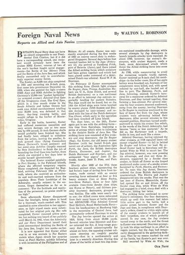 Keywords: exeter england world war 2 worldwar2 our navy ournavy magazine java sea javasea heavy cruiser heavycruiser royal navy royalnavy Article about the loss of actions and loss of HMS Exeter in the Java Sea. From the Mid-February 1946 edition of Our Navy. Article about the loss of actions and loss of HMS Exeter in the Java Sea. From the Mid-February 1946 edition of Our Navy. |