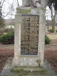 | Keywords: Hnidousy Svermov Kladno KL CZ WW memorial 011.jpg Pomník obětem světových válek v Hnidousích místní části kladenské čtvrti Švermov V parčíku naproti základní škole při Velvarské ulici Vytvořil Jan Vítězslav Dušek z Tábora roku 1926 Memorial to victims of World Wars in Hnidousy eastern part of Švermov suburb Kladno Kladno District Czech Republic Located in a park opposite to elementary school in Velvarská Street Erected in 1926 0 cellpadding 15 cellspacing 0 style text-align left; background black; color yellow - text-align center; colspan 2 VE SVĚTOVÉ VÁLCE 1914 1918 PADLI - text-align center; BAROCH FERDINAND <br /> BARTOŠ VÁCLAV <br /> BEJČEK JAROSLAV <br /> BUS JOSEF <br /> DOUŠA FRANTIŠEK <br /> DUŠEK FRANTIŠEK <br /> FIALA ALOIS <br /> FRYČ BEDŘICH <br /> FUCHS JOSEF <br /> HEJKAL FRANTIŠEK <br /> HORA JOSEF <br /> HRACH JOSEF <br /> CHALOUPKA JOSEF <br /> CHARVÁT JOSEF <br /> KÁMEN FRANTIŠEK <br /> KAZDA JOSEF <br /> KAZDA VÁCLAV <br /> KONČELÍK KAREL <br /> KOŠAŘ JOSEF <br /> KVERKA KAREL MERHOUT JOSEF <br /> MRHAL JOSEF <br /> NOVOTN VÁCLAV <br /> NOV JOSEF <br /> PATLEICH FRANTIŠEK <br /> POCH VÁCLAV <br /> POKORN ANTONÍN <br /> POSPÍŠIL ANTONÍN <br /> RAK VÁCLAV <br /> SKLENÁŘ VOJTĚCH <br /> STÁDNÍK JAROSLAV <br /> SVOBODA VÁCLAV <br /> ŠEBELE ALOIS <br /> ŠEFL ANTONÍN <br /> ŠROUBEK JAN <br /> ŠVEHLA FRANTIŠEK <br /> VLK JINDŘICH <br /> VILD FRANTIŠEK <br /> VILETA JAROSLAV <br /> ŽELEZN ALOIS - text-align center; colspan 2 V PULJI 1918 POPRAVEN KOUCK FRANTIŠEK - text-align center; colspan 2 V BOJÍCH NA SLOVENSKU 1919 PADLI - text-align center; HARTMAN MIROSLAV LÁŽNOVSK JOSEF - text-align center; colspan 2 V LETECH 1939 1945 ZA NĚMECKÉ OKUPACE <br /> POPRAVENI - text-align center; KALINA JOSEF <br /> KOUBA BOHUMIL ŘACH VÁCLAV <br /> KOTASKA JAROSLAV <br /> OPLT STANISLAV - text-align center; colspan 2 UMUČENI - text-align center; BEJČEK JOSEF <br /> JÍLEK JOSEF <br /> KOLÁŘ LADISLAV MŰLLER OTTO <br /> ELSNIC JAROSLAV <br /> OPLT FRANTIŠEK - text-align center; colspan 2 PŘI NÁLETU ZABITI - text-align center; LANDA KAREL PECHOVÁ VĚRA World War I memorials in Kladno District World War II memorials in Kladno District Monuments and memorials in Kladno Plaques in Kladno Velvarská Švermov |