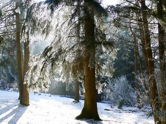 Keywords: hoarfrost crystal forest conifer fir frozen winter cold ice eiskristalle frost nature ripe back light