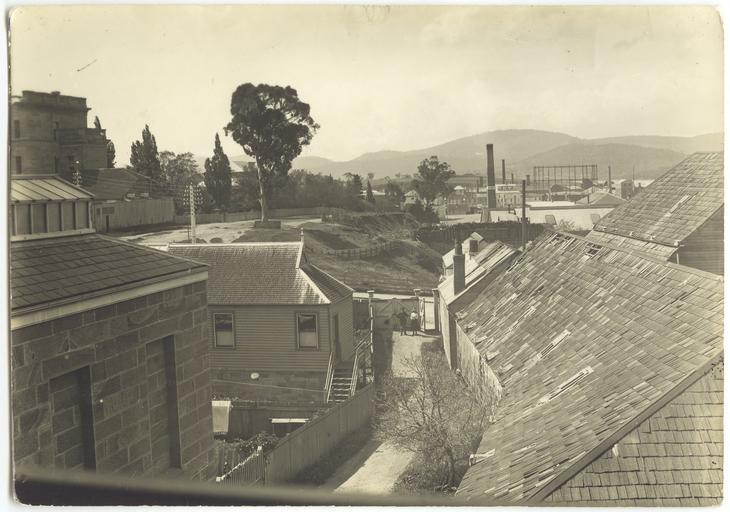 View Original:Hobart_-_Davey_Street_-_corner_of_Murray_Street-_looking_past_Franklin_Square_to_Wharves_&_IXL_building_c1900s.jpg (3508x2461)