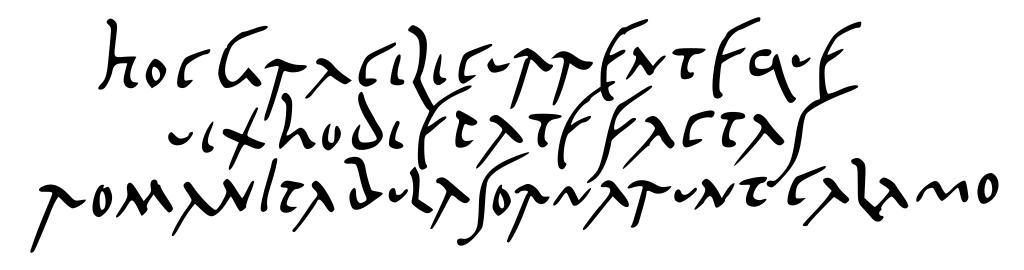 Keywords: Hoc gracili currenteque.svg en This is a Latin elegiac couplet composed by myself which might be translated as With this slender and running pen the Romans decorated writing tablets which today scarcely have been brought to light The chief merit of this verse is that all letters of the Latin alphabet are used except K Y and Z 2014-02-05 00 23 15 Hocgracili jpg 150 original u Alatius vectorization u Carnby + Custom license marker 2014 02 04 en wikipedia Alatius Uploaded with UploadWizard Roman cursive Latin inscriptions |