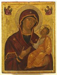 Keywords: Hodegitria (16th c., Cretan school).jpg Παναγία Οδηγήτρια ρώτες δεκαετίες του 16ου αιώνα 55 5x73εκ άγνωστος Κρητικός ζωγράφος ήτη Ρ Θ εο Υ Στην εικόνα αριστάνεται η Παναγία σε ροτομή ου κρατεί τον Χριστό στο αριστερό της χέρι και έχει το δεξί χέρι μ ροστά στο στήθος Ο Χριστός στρέφει το βλέμμα ρος αυτήν ευλογεί και κρατεί κλειστό ειλητό Ε άνω στις γωνίες εικονίζονται οι αρχάγγελοι ιχαήλ και Γαβριήλ ημίσωμοι και με καλυμμένα τα χέρια σε στάση ροσκύνησης http //eib xanthi ilsp gr/gr/icons asp cursort iconTitle selectFieldValue vpage 2 16th c unidentified Cretan painter PD-old Files uploaded by Shakko from various sources 16th-century icons of Greece Cretan School Marian icons in Greece Hodegetria |