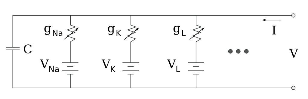 Keywords: Hodgkin-huxley-circuit.svg en Equivalent circuit for the cell membrane in the Hodgkin-Huxley model Own illustration 2008 Arne Nordmann norro 2008-11-29 Cell membrane equivalent circuit svg Action potentials Electrical diagrams SVG files on neurology |