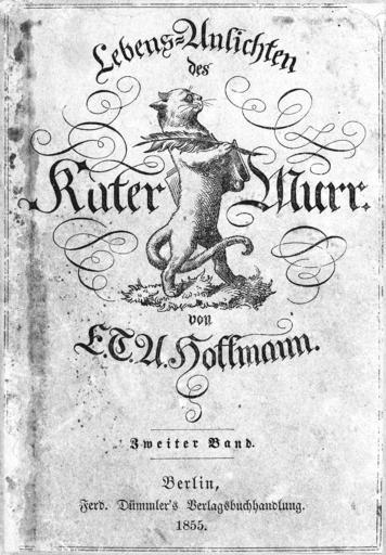 Keywords: HoffmannLebensAnsichten1855Bd2.png of exactly this picture in his preface to the 1st volume Scanned by Aristeas from his own copy of the book 1855 Creator E T A Hoffmann en As all persons involved in creating this jacket and its picture are necessarily dead since more than 70 years this picture should have no copyright restrictions according to German law PD-old-100 Literature of Germany Hoffmann Ernst Theodor Amadeus Cats in literature E T A Hoffmann 1855 books Book covers from Germany |
