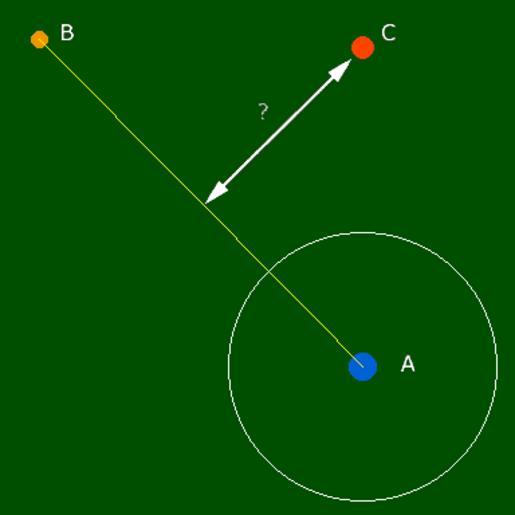 Keywords: Höger eller vänster.gif Ett exempel på vektorgeometri beskrivning nedan User Solkoll on http //sv wikipedia org sv wikipedia Solkoll rum Bildbeskrivning Lilla blåa sv Anna <math>A</math> står på en sv gräsmatta sv komplexa talplanet och tittar på den oranga sv bollen <math>B</math> Den rödspräckliga sv Katten Catta <math>C</math> ligger och latar sig i solen scenen sedd från ovan Nu är frågan ligger Catta till höger eller till vänster om lilla Annas siktlinje Ett sätt att ta reda på det är att translatera förflytta hela bilden ovan så att lilla Anna hamnar mitt i bilden och sedan rotera scenen på ett sådan sätt så att bollen befinner sig på den positiva x-axeln Anna tittar rakt åt höger Därefter kan man se om Catta befinner sig ovan eller nedanför x-axeln om C parameterns sv imaginärdel är positiv eller negativ För att beräkna detta börjar vi först med att skapa två nya sv vektorer Punkt <math>P</math> och Rotation <math>R</math> ur de tre vi redan har <math>A B C </math> Den nya parametern <math>P</math> är längden och vinkeln från <math>A</math> till <math>C</math> och motsvarar alltså av vektorn mellan lilla Anna och Catta ej markerad i bilden Den vektorn skapas genom att dra ifrån subtrahera lilla Annas position från Cattas Vi gör även likadant med bollen <math>P C - A</math> <math>R B - A</math> 0 cellpadding 4 E7E7E7 Vad vi gör här är att förflytta talplanet på ett sådant sätt så att lilla Anna kommer att befinna sig i sv origo <math>P</math> och <math>R</math> är Cattas och bollens nya positioner i förhållande till detta Lilla Annas nya position behvöer vi inte beräkna då den motsvarar <math>origo A - A 0</math> och det vet vi ju redan Vad <math>R</math> beträffar så är vi endast intresserade av dess vinkel siktlinjens vinkel i förhållande till sv x-axeln och inte av dess längd Därför delar vi <math>R</math> med sitt eget sv absolutbelopp <math>R R / R </math> 0 cellpadding 4 E7E7E7 Det här metoden kallas för att beräkna en normalvektor eller vektorns normal En sådan har alltid längden 1 0 och används för att ange en riktning Nyttan med en sådan är att man kan använda den för att lägga till normalens vinkeln till en annan vektors vinkel Det görs med hjälp av en vektormultiplikation Nu kommer <math>R</math> att ha längden absolutbeloppet 1 0 och peka på skärningspunkten mellan sv enhetscirkeln runt lilla Anna i bilden och siktlinjen Den punkten motsvara sv cosinus och sv sinus för sv vinkeln mellan siktlinjen och x-axeln Vi behöver vinkeln för att veta hur långt vi skall rotera tillbaka scenen för att bollen skall hamna på den positiva x-axeln Men för att kunna göra detta så måste vi rotera medurs lika långt som vinkeln pekar moturs Vi måste alltså skapa en medursvinkel av motursvinkeln spegla den över x-axeln Det görs genom att beräkna dess sv komplexkonjugat <math>R \bar R </math> Nu behöver vi inte ge oss på att rotera hela scenen utan det är endast imaginärdelen hos den roterade parametern <math>P</math> som vi behöver ta reda på Eftersom det inte är ett komplext tal så behöver vi heller inte använda komplexa tal för att beräkna den Därför bryter vi ur real och imaginärdelarna ur <math>P</math> och <math>R</math> Dom kallar vi <math>Px</math> och <math>Py</math> samt <math>Rx</math> och <math>Ry</math> Sedan beräknas resultatet <math>resultat Rx Py + Ry Px</math> Om nu <math>resultat < 0</math> så befinner sig Catta till höger om lilla Annas siktlinje och om <math>resultat > 0</math> så är Catta till vänster Skulle till äventyrs <math>resultat 0</math> så befinner sig Catta mitt på siktlinjen Triangelns area Om vi nu tänker oss en sv triangeln som bildas av dom tre sv punkterna i bilden ovan <math>A -> B -> C -> A</math> så kan man ju alltid undra hur stor dess sv area är Nu råkar det falla sig så att vi i pricip har allt vi behöver för att beräkna den vad vi skulle ha gjort var att spara värdet på parametern <math>R</math> innan vi delade den med sitt eget absolutbelopp tidigare Vi beräknar den på nytt <math>R B - A</math> Nu är det bara längden på <math>R</math> vi är intresserade av avståndet mellan <math>A</math> och <math>B</math> det motsvarar triangelns baslinje Nästa steg blir att beräkna längden på den och sparar beloppet i <math>b</math> <math>b R </math> Sådär nu har vi triangelns sv bas men hur stor är dess sv höjd Det har vi redan tagit reda på när vi testade för höger/vänster ovan Det vi beräknade är egentligen avståndet till linjen så därför motsvarar absolutbeloppet av <math>resultat</math> triangelns höjd vi beräknar även den <math>h resultat </math> Sådär nu är det bara att sätta in dessa i den sedvanliga sv formeln som brukas för att beräkna en triangels area <math>arean bh/2</math> Se även sv Bild Triangel ytan GIF page is was here 6 december 2004 kl 00 40 Solkoll 384x384 2 314 bytes <span class comment > kommer Solkoll sv Kategori Vektorgeometri </span> Uploaded using http //tools wikimedia de/~magnus/commonshelper php CommonsHelper or http //tools wikimedia de/~magnus/pushforcommons php PushForCommons Check categories 2009 November 16 sv wikipedia Linjärt_rum 3 Linear algebra Files by User Solkoll from sv wikipedia Abstract algebra |