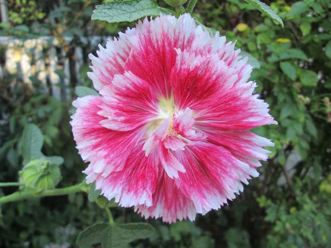 Keywords: holyhock garden flower red white