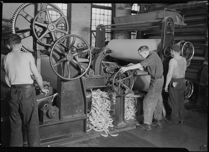| Keywords: Holyoke, Massachusetts - Paper. American Writing Paper Co. Rewinding paper from reel. - NARA - 518327.tif Scope and content General notes 518327 Local identifier 69-RP-38 Federal Works Agency Work Projects Administration National Research Project ca 1941 - ca 1942 NARA-Author Hine Lewis Wickes 1874-1940 Photographer 1122914 <br /> Still Picture Records Section Special Media Archives Services Division NWCS-S National Archives at College Park 8601 Adelphi Road College Park MD 20740-6001 1936 - 1937 Record group Record Group 69 Records of the Work Projects Administration 1922 - 1944 Record group ARC 398 Lewis Hine Photographs for the National Research Project compiled 1936 - 1937 Series ARC 518291 File unit File unit ARC Variant control numbers NAIL Control Number NWDNS-69-RP-38 yes Other versions <gallery> File Mt _Holyoke _Massachusetts_-_Paper _American_Writing_Paper_Co _Rewinding_paper_from_reel _-_NARA_-_518327 tif tif File Mt _Holyoke _Massachusetts_-_Paper _American_Writing_Paper_Co _Rewinding_paper_from_reel _-_NARA_-_518327 jpg jpg </gallery> NARA-cooperation PD-USGov NARA TIF images with categorized JPGs |