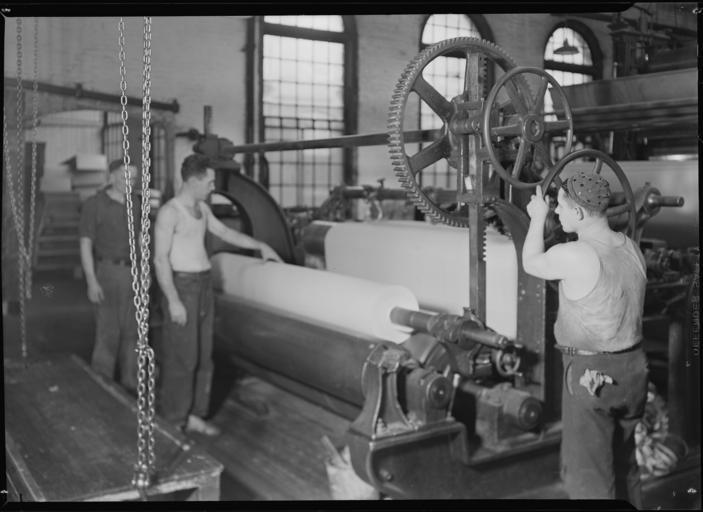 | Keywords: Holyoke, Massachusetts - Paper. American Writing Paper Co. Rewinding paper from reel. - NARA - 518328.jpg Scope and content General notes 518328 Local identifier 69-RP-39 Federal Works Agency Work Projects Administration National Research Project ca 1941 - ca 1942 NARA-Author Hine Lewis Wickes 1874-1940 Photographer 1122914 <br /> Still Picture Records Section Special Media Archives Services Division NWCS-S National Archives at College Park 8601 Adelphi Road College Park MD 20740-6001 1936 - 1937 Record group Record Group 69 Records of the Work Projects Administration 1922 - 1944 Record group ARC 398 Lewis Hine Photographs for the National Research Project compiled 1936 - 1937 Series ARC 518291 File unit File unit ARC Variant control numbers NAIL Control Number NWDNS-69-RP-39 Other versions <gallery> File Mt _Holyoke _Massachusetts_-_Paper _American_Writing_Paper_Co _Rewinding_paper_from_reel _-_NARA_-_518328 tif tif File Mt _Holyoke _Massachusetts_-_Paper _American_Writing_Paper_Co _Rewinding_paper_from_reel _-_NARA_-_518328 jpg jpg </gallery> NARA-cooperation PD-USGov Holyoke Massachusetts Men at work in the United States |
