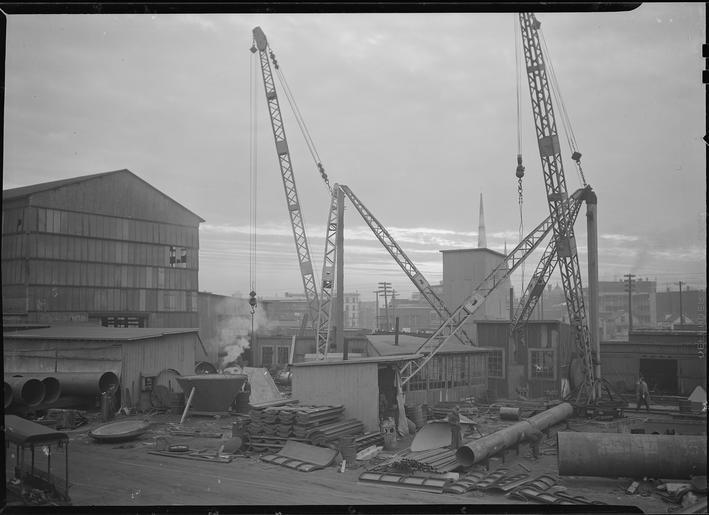 | Keywords: Holyoke, Massachusetts - Scenes - NARA - 518294.tif Scope and content Mt Holyoke Massachusetts - Scenes A Holyoke firm in steel plate fabrication since 1888 now in process of re-organization; bought in from the original founders by a superintendent now in the hands of the son; the morning after big snow in upper Vermont rolls out and starts North for delivery great snowplows marked Holyoke All Steel A second Holyoke firm grey iron foundry and machine shop antecedent to paper industries once made water wheels now buys electric power Business still in hands of the founders sons French Canadian locality showing one tenement The site of the first French Canadian Church 1869 wiped out by a conflagration which burned seventy-five people at vespers and made heroes of priests and firemen; replaced in 1875 with this edifice convent and school; open at dusk when a machinist leaving the day shift can stop for prayers Walsh Holyoke Steam Boiler Works Jolly Inc - Church of the Precious Blood General notes 518294 Local identifier 69-RP-3 Federal Works Agency Work Projects Administration National Research Project ca 1941 - ca 1942 NARA-Author Hine Lewis Wickes 1874-1940 Photographer 1122914 <br /> Still Picture Records Section Special Media Archives Services Division NWCS-S National Archives at College Park 8601 Adelphi Road College Park MD 20740-6001 1936 - 1937 Record group Record Group 69 Records of the Work Projects Administration 1922 - 1944 Record group ARC 398 Lewis Hine Photographs for the National Research Project compiled 1936 - 1937 Series ARC 518291 File unit File unit ARC Variant control numbers NAIL Control Number NWDNS-69-RP-3 yes Other versions <gallery> File Mt _Holyoke _Massachusetts_-_Scenes_-_NARA_-_518294 tif tif File Mt _Holyoke _Massachusetts_-_Scenes_-_NARA_-_518294 jpg jpg </gallery> NARA-cooperation PD-USGov NARA TIF images with categorized JPGs Massachusetts |