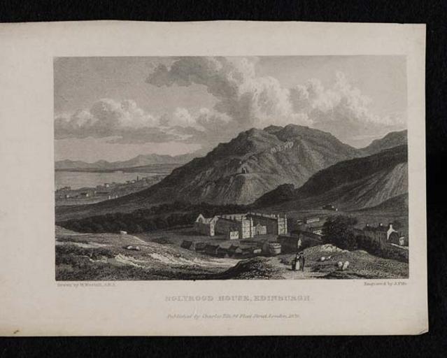 | Keywords: holyrood house holyroodhouse holyrood palace holyroodpalace palace of holyroodhouse palaceofholyroodhouse mary queen of scots maryqueenofscots edinburgh royal residence royalresidence w. westall wwestall engraving j. fife jfife walter blaikie walterblaikie nls photo border blackandwhite surreal outdoor black and white Engraving by J. Fife after an original drawing by William Westall of Holyrood House, Edinburgh. Holyrood House is also known as the Palace of Holyroodhouse or Holyrood Palace; the official royal residence in Scotland, once home to Mary Queen of Scots. More .... Engraving by J. Fife after an original drawing by William Westall of Holyrood House, Edinburgh. Holyrood House is also known as the Palace of Holyroodhouse or Holyrood Palace; the official royal residence in Scotland, once home to Mary Queen of Scots. More .... |