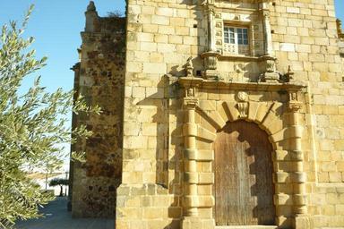 Keywords: home church facade temple input granite torremayor blocks stone arc columns santiago apostle plating window lintel door closed