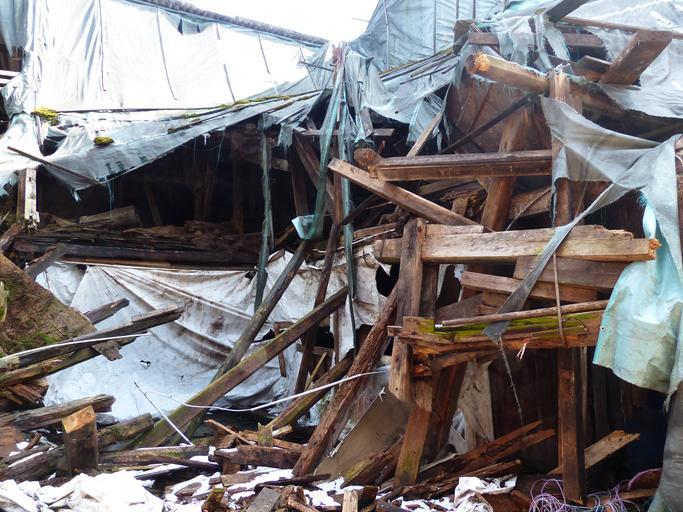 Keywords: home ruin collapse roof bar dangerous garbage chaos clutter
