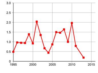 Keywords: Homicide Rate in Luxembourg.svg en Homicide rate per 100 000 in Luxembourg Data taken from http //www indexmundi com/facts/luxembourg/homicide-rate 2016-08-17 own Delphi234 other versions current annually Generated with Wikimedia SVG Chart SVG Chart/box cc-zero Homicide rates Crime in Luxembourg Diagrams labelled with numbers only |