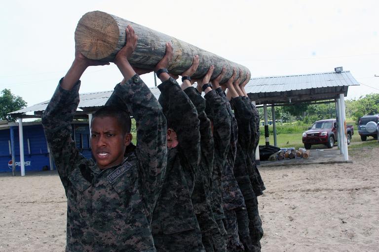 | Keywords: Honduran Fuerza Especiales Naval with a trunk.jpg  Honduran Fuerza Especiales Naval FEN candidates use teamwork to perform physical training exercises with a heavy log at a local beach in Honduras in the fall of 2012 Log physical training exercises were one of many physically demanding exercises as part of two eight-week Basic Underwater Demolition/SEAL-style selection courses conducted by members of the U S Naval Special Warfare Task Element-Alpha in order to assist their Honduran counterparts establish this elite unit within the Honduran military The FEN is a maritime unit of special operators capable of combating transnational organized crime in and around their waterways U S Navy Photo by ITC Gino Rullo Naval Special Warfare Unit-FOUR http //www arsouth army mil/news/southcomnews/4626-us-navy-special-forces-help-honduras-form-elite-counter-trafficking-force html Gino Rullo PD-USGov-Military-Navy Special forces of Honduras |
