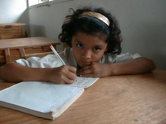 Keywords: Honduras San Ramon Choluteca school 2.jpg Pensive female student in new class room provided by the 'Solar net Village' project <br> Camera Info OLYMPUS SR83 Digital F-stop 2 8 Exposure 1/59<br> Create date 1999 09 02 16 09 25<br> Contact creator at http //Stockhausen yojoa org - Page also was a link called <u>San Ramon Choluteca Honduras 1999 first 'Solar net Village'</u> to access the full WEB collection own 1999 Zack Clark personality rights ZackClark Education in Honduras Girls of Honduras Classrooms in Honduras People writing Females in rooms Girls looking at viewer People and walls People and desks Females writing Photographs of girls Thinking San Ramon Choluteca
