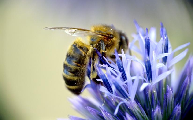 Keywords: bee flower aster honey worker pollen park nectar plant insect wild closeup fly foliage nobody natural green floral spring petal pollinate yellow life leaf field blossom collecting bloom violet close-up macro