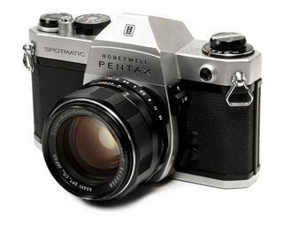 MAKE A MEME View Large Image Honeywell-Pentax-Spotmatic.jpg en A Honeywell Pentax Spotmatic IIA SLR camera Shown here with a Asahi Super-Takumar F/1 4 50mm lens that has yellowed own Evan-Amos 2010-09-05 User Evan-Amos/EABanner User Evan-Amos/A700 Pentax Spotmatic II ...