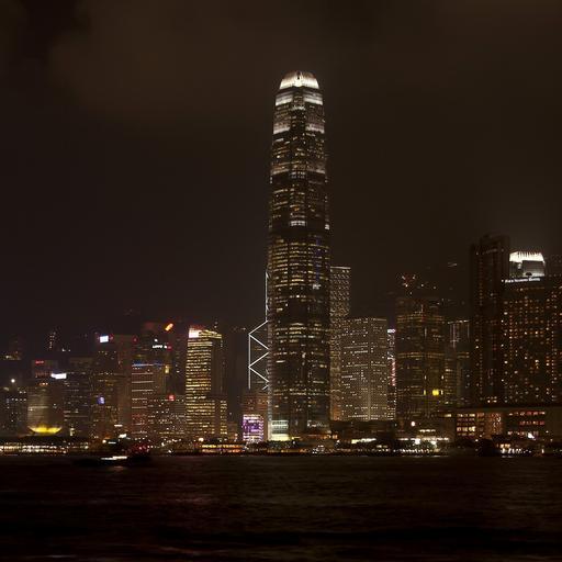 Keywords: hong-kong china city cities skyscrapers skyline night evening bay harbor port water lights glow buildings beautiful outside
