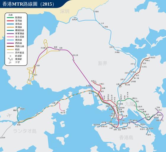| Keywords: Hong Kong Railway Route Map ja.svg MTR Japanese the Hong Kong metro/subway system It does not mean to be wholly accurate but offers a roughly geographical sense of Hong Kong territories and the MTR system 港鐵的 SVG 路綫 日文 MTR Japanisch die U-Bahn System von Hongkong 2014-05-29 Machine-translated from File Hong Kong Railway Route Map zh svg by Jc86035 Jc86035 Sameboat original Jc86035 <gallery> File Hong Kong Railway Route Map de svg Deutsch File Hong Kong Railway Route Map en svg English File Hong Kong Railway Route Map zh svg 中文 </gallery> Inkscape-hand ValidSVG Uploaded with UploadWizard Geographically accurate MTR maps |