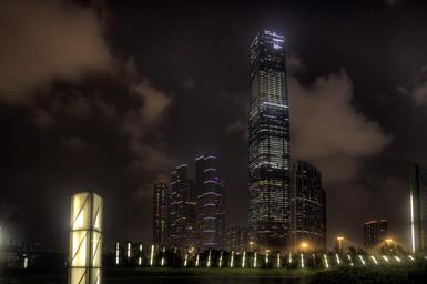 Keywords: hong kong skyscrapers night union square architecture cityscape urban asia buildings businesses travel china tourism weather harbor sky landscape view metropolis tall tower lights clouds
