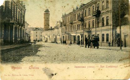Keywords: Horadnia, Zamkavaja. Горадня, Замкавая (1906).jpg Го адня Horadnia вуліца Замкавая vulica Zamkavaja www meshok ru author 1906 PD-old-70 Zamkavaja street Hrodna Postcards of Hrodna History of Hrodna