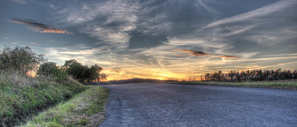 Keywords: horizon path road sun landscape rays clouds sunset evening west sky