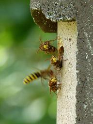 Keywords: hornets vespa crabro animal insect wasp vespidae sting the hive hornissennest nest entry hole nesting box incubator crawl fly hum landing land fly in wing beat movement