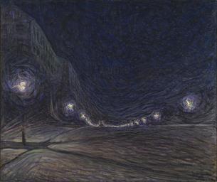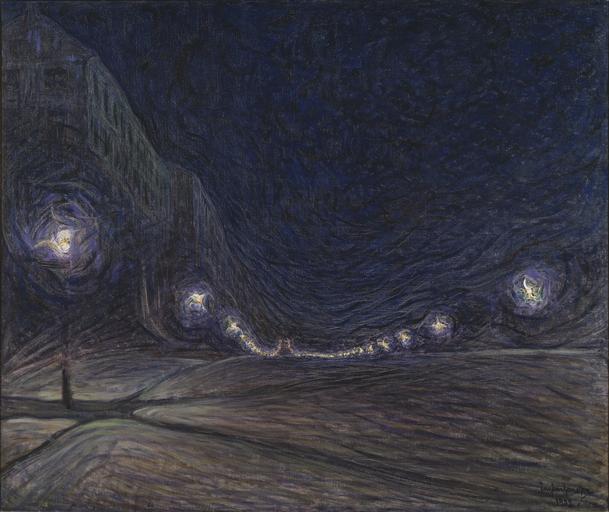 Keywords: Hornsgatan by Night (Eugène Jansson) - Nationalmuseum - 18873.tif Artwork Creator Eugène Jansson Hornsgatan by Night Eugène Jansson was a landscape artist who painted city views He is most famous for his nocturnal views in deep-blue shades where the streetlights blend with other elements of the urban scene in a way that makes familiar places seem foreign and new In Hornsgatan at Night the gaslights create swirls and waves along the empty Stockholm street Eugène Jansson var landskapsmålare i staden Mest känd är han för sina nattliga vyer i djupt blå färger där ljuset från gatlyktor smälter samman med andra av stadsrummets delar på ett sätt som kommer bekanta miljöer att framstå som främmande Som i Hornsgatan nattetid där gasbelysningen skapar virvlar och vågmönster på den tomma Stockholmsgatan header Eugène Jansson was a landscape artist who painted city views He is most famous for his nocturnal views in deep-blue shades where the streetlights blend with other elements of the urban scene in a way that makes familiar places seem foreign and new In Hornsgatan at Night the gaslights create swirls and waves along the empty Stockholm street Eugène Jansson var landskapsmålare i staden Mest känd är han för sina nattliga vyer i djupt blå färger där ljuset från gatlyktor smälter samman med andra av stadsrummets delar på ett sätt som kommer bekanta miljöer att framstå som främmande Som i Hornsgatan nattetid där gasbelysningen skapar virvlar och vågmönster på den tomma Stockholmsgatan 1902 Olja på duk Size cm 182 152 Framed Size cm 188 156 5 Institution Nationalmuseum Stockholm Signerad Eugène Jansson 1902 accession number 18873 NM 1869 place of creation Erik Cornelius / Nationalmuseum Nationalmuseum Stockholm cooperation project Licensed-PD-Art PD-old-auto PD-Nationalmuseum_Stockholm 1915 Media contributed by Nationalmuseum Stockholm 2016-10 Paintings in the Nationalmuseum Stockholm Eugène Jansson |