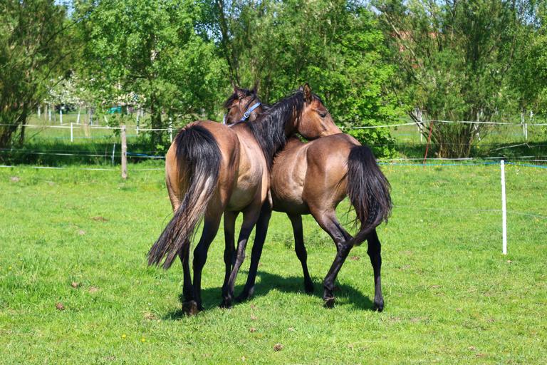 Keywords: horse brown mold thoroughbred arabian young horses play pasture mold foal coupling