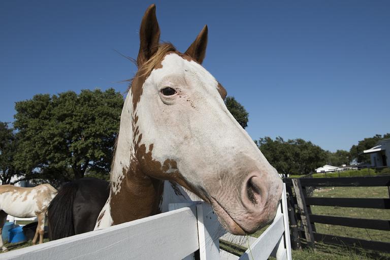 Keywords: horse corral fence ranch animal livestock outdoors pen portrait head