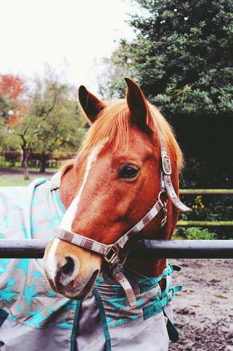 Keywords: horse coupling pasture paddock brown horse head country life harness for horses
