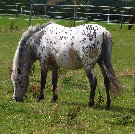 Keywords: horse equine spotted spots grazing pasture meadow farm ranch grass plants nature outside germany country countryside rural