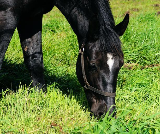 Keywords: horse equus horse head rap pasture eating peaceful harmonious