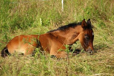 Keywords: horse foal brown mold suckling thoroughbred arabian sleep pasture