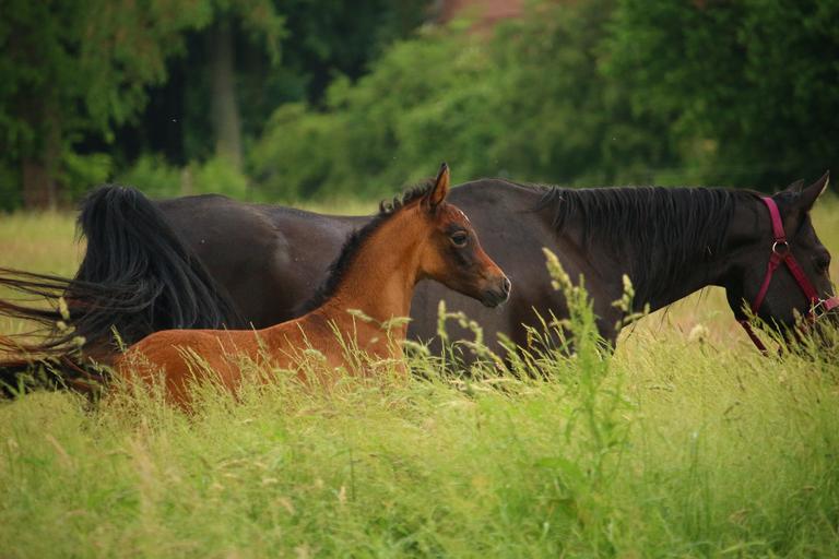 Keywords: horse foal mare rap suckling brown mold thoroughbred arabian pasture meadow