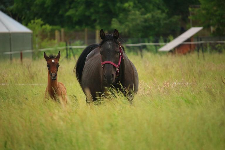 Keywords: horse foal mare suckling rap brown mold thoroughbred arabian pasture meadow