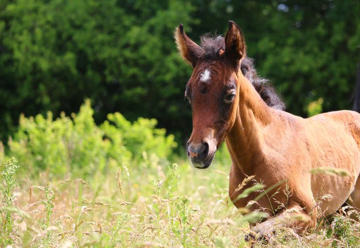 Keywords: horse foal thoroughbred arabian mold brown mold pasture meadow young animal