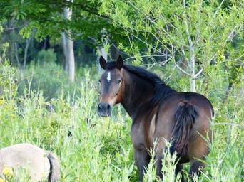 Keywords: horse green landscape nature prairie pastures animals ponytail wild