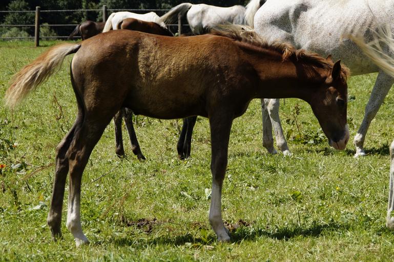 Keywords: horse pferdeportrait arabs coupling paddock pasture portrait animal brown foal young animal