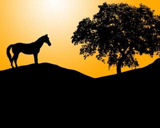 Keywords: horse pony animal equine black silhouette sunset sunrise tree orange hill hills beautiful art shape outline