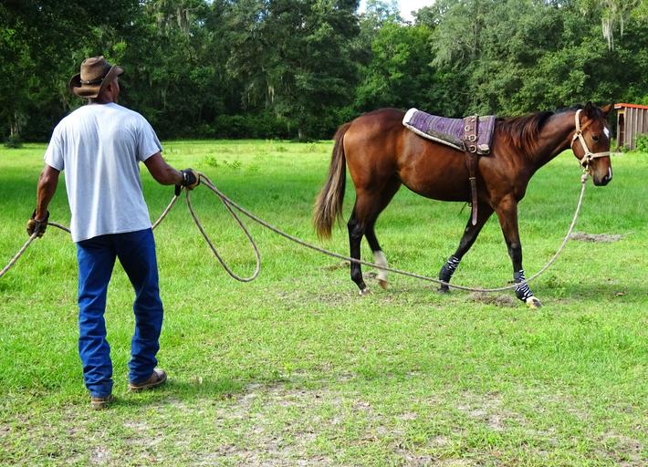 Keywords: horse training trainer thoroughbred outdoors farm rope cowboy