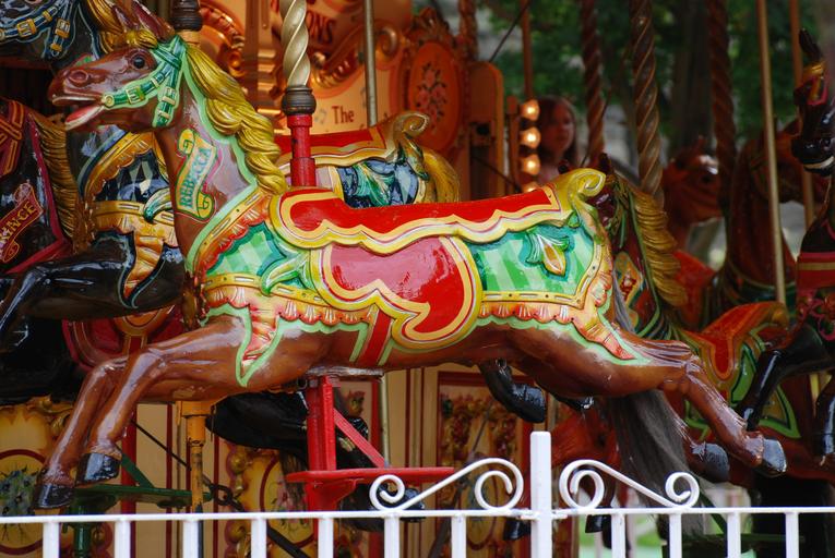 Keywords: horse wooden carousel retro nostalgic merry-go-round vintage colorful fun childhood