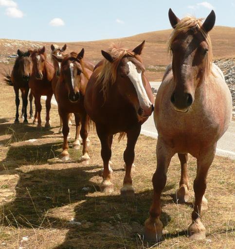 Keywords: horses animal horse countryside queue abruzzo campo imperatore national park gran sasso appennines italy