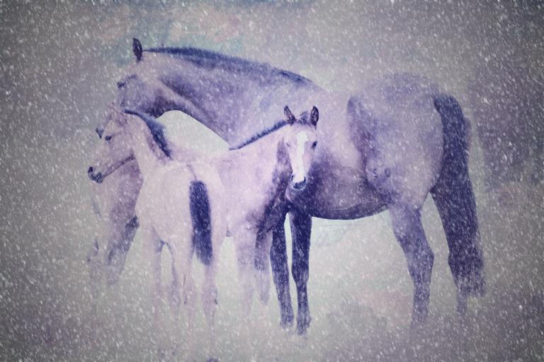 Keywords: horses foal winter snow cold
