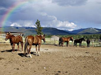 Keywords: horses horse riding horseback riding tourism landscape animal nature mountain cariboo british columbia canada rainbow weather thunderstorm summer scenery