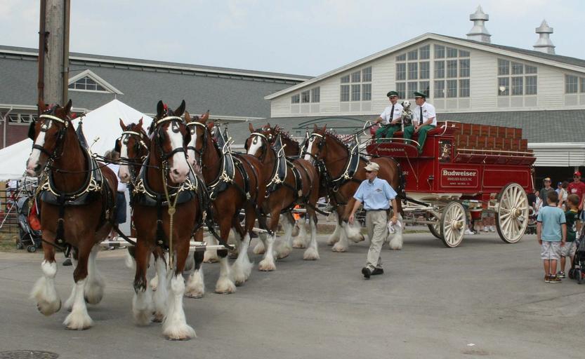 Keywords: horses wagon clydesdales carriage transport animals hitch team promotion corporation budweiser