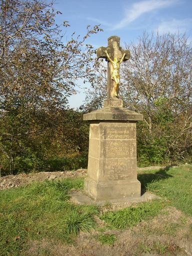 | Keywords: Hostoun KL CZ wayside cross 121.jpg Hostouň okres Kladno Kříž ve východní části obce při silnici do Dobrovíze křižovatka ulic Kladenská a Na Pohoří Hostouň Kladno District Czech Republic Wayside cross besides Kladenská Street 50 06 52 2 N 14 12 21 8 E type landmark_region CZ 0 cellpadding 15 cellspacing 0 style background eebbbb; align center - text-align center; POCHVÁLEN PÁN <br /> JEŽÍŠ KRISTUS <br /><br /> PANE <br /> SMILUJ SE <br /> NAD NÁMI <br /><br /> L P 1913 <br /> Hostouň Kladno District Wayside crosses in Kladno District 1913 sculptures |